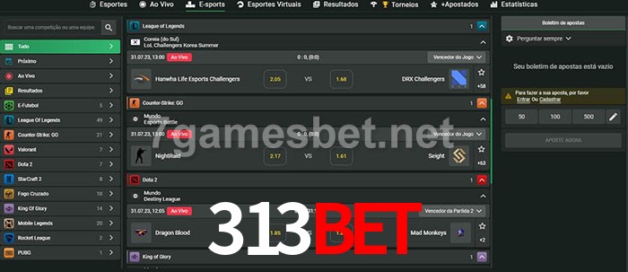 O 313Bet oferece uma grande seleção de opções de apostas em e-sports com probabilidades competitivas